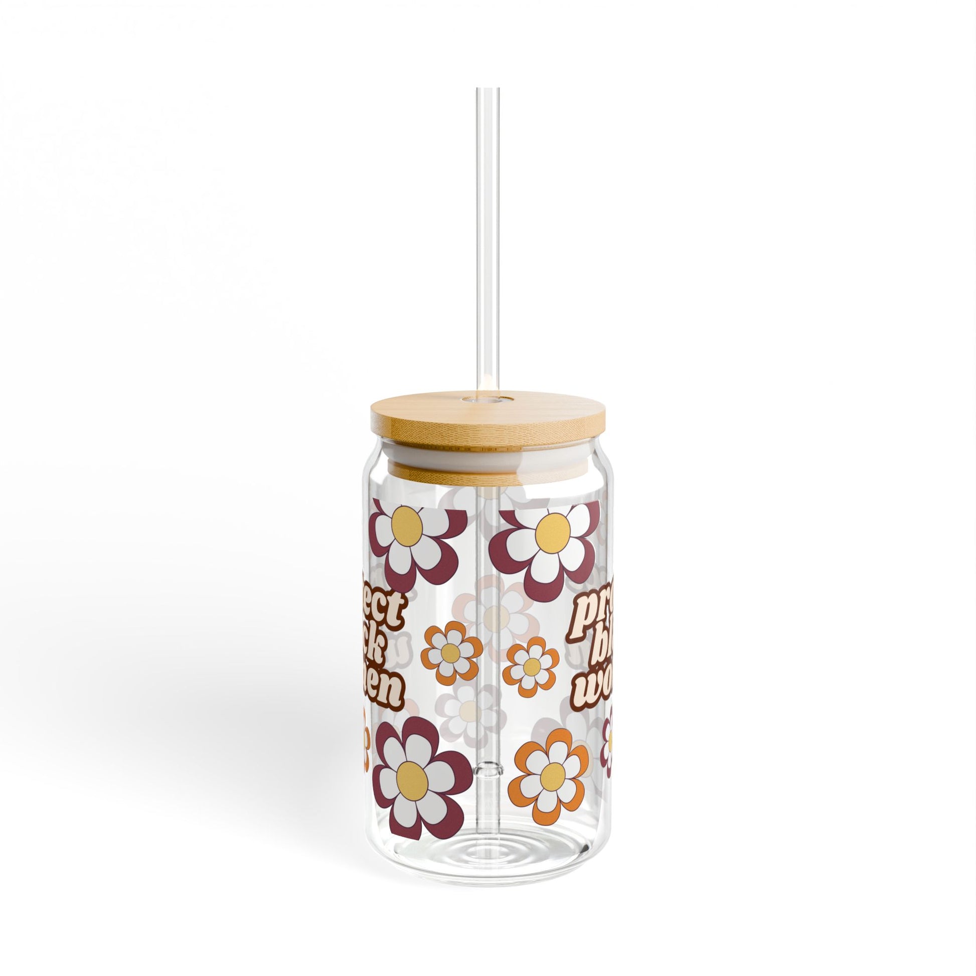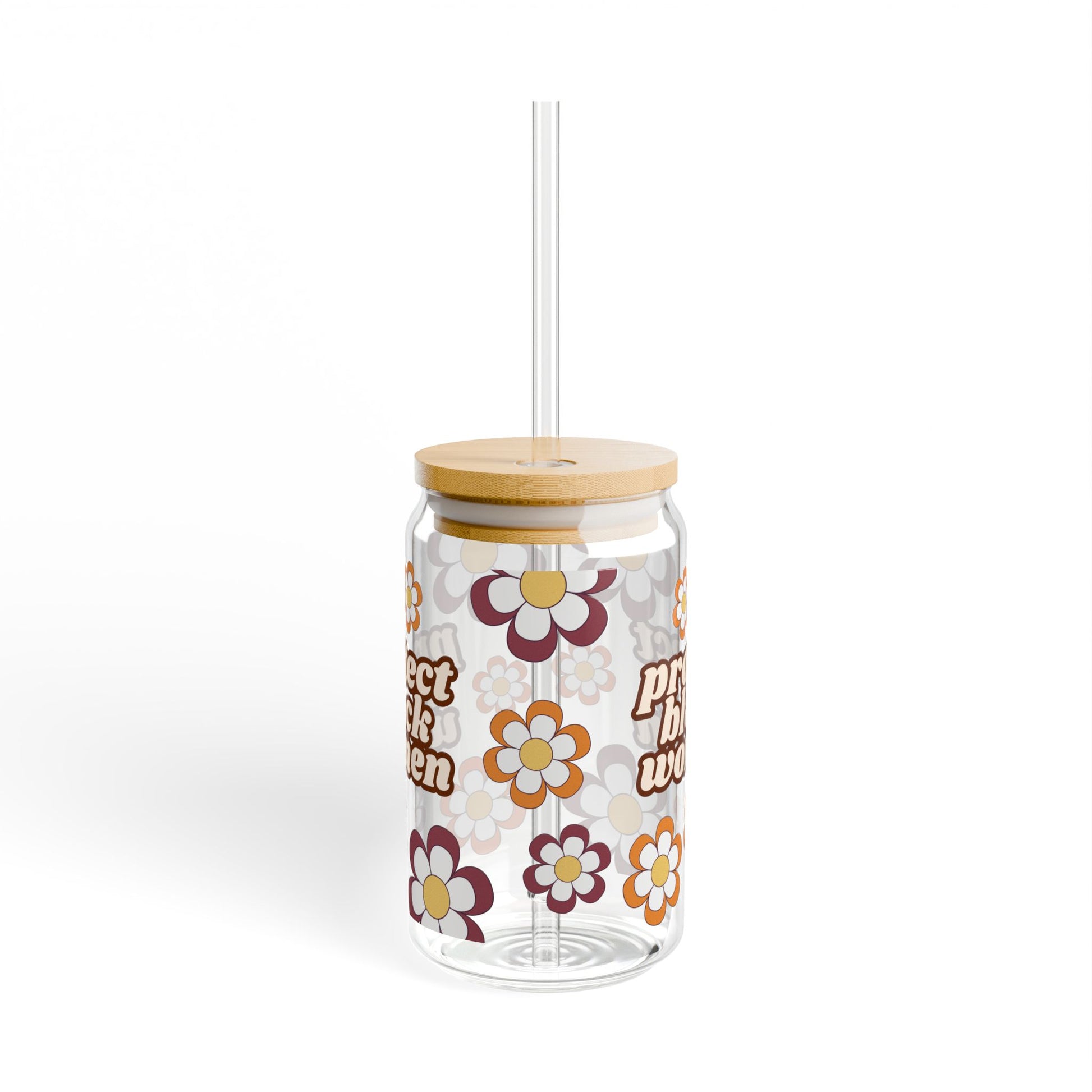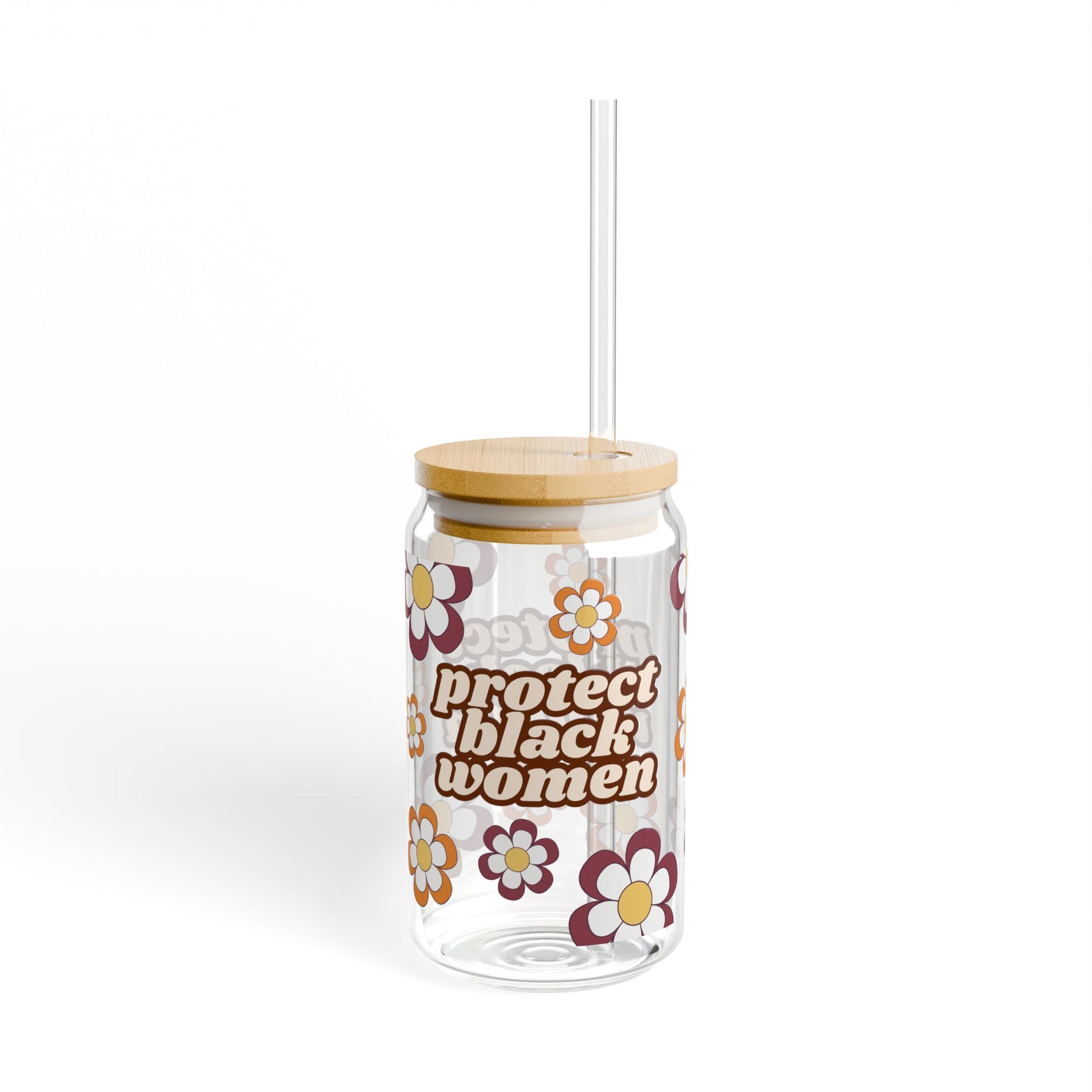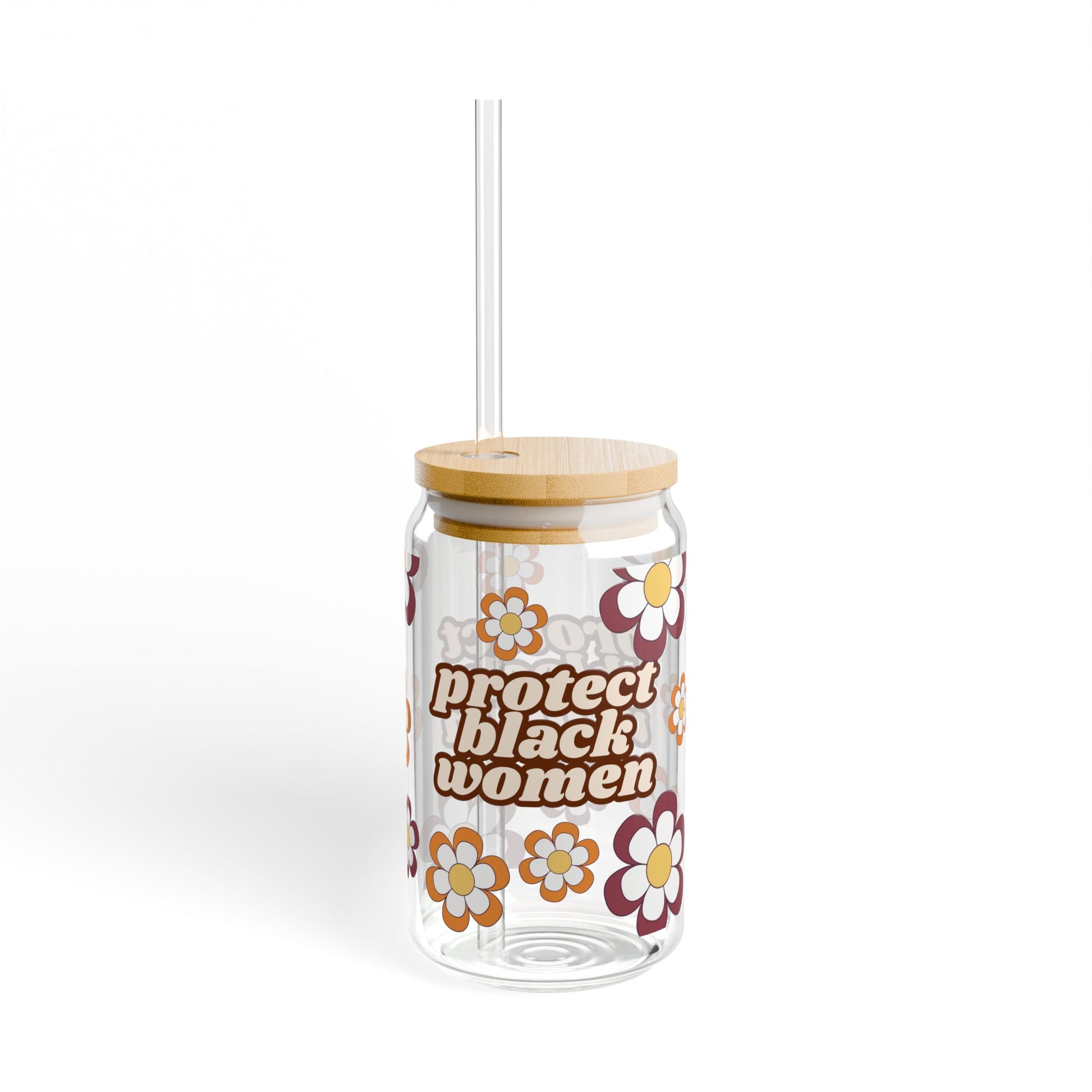 This Retro Protect Black Women Sipper Glass is the perfect ally for celebrating Black History Month. With vibrant colors and a clear tempered glass construction, this 16oz sipper glass can withstand hot/cold temperatures and is BPA free. It comes with the option of a gasket-push bamboo lid and Tritan plastic straw, making it a stylish and durable choice for those looking to sip in style.